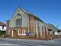 Baptist | – | A chapel of 1786 was replaced in 1817 by the present two-storey building, a "completely plain ... brick box" with gable ends and a string-course dividing the two floors—a characteristic feature of 17th-century Nonconformist architecture. There are three segmental-arched windows on the symmetrical façade and a datestone in the gable. The interior is galleried on three sides. | [110][111] [112][113] [114][115] [116] | |