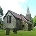 Anglican | II | The walls of this mostly 12th-century church are of local stone with some brickwork, and a tall broach spire rises from a weatherboarded turret at one end of the nave. The windows are various Early English and Decorated Gothic, some incorporating older material. Minimal restoration work has been undertaken (although some was needed after a fire in 1947), and the Victoria County History of Surrey calls it "one of the most interesting churches in the district". | [107][108] [109] |