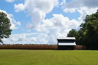 Today, as was also true in the past, there is a wide range of opinion as to what differentiated a plantation from a farm. Typically, the focus of a farm was subsistence agriculture. In contrast, the primary focus of a plantation was the production of cash crops, with enough staple food crops produced to feed the population of the estate and the livestock.[4] A common definition of what constituted a plantation is that it typically had 500 to 1,000 acres (2.0 to 4.0 km2) or more of land and produced one or two cash crops for sale.[5] Other scholars have attempted to define it by the number of slaves that were owned.[6]