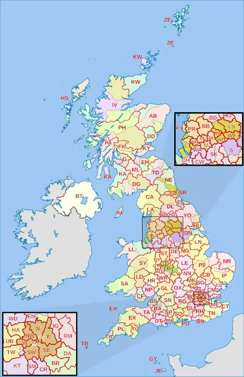 | AB AL B BA BB BD BF BH BL BN BR BS BT BX CA CB CF CH CM CO CR CT CV CW DA DD DE DG DH DL DN DT DY E EC EH EN EX FK FY G GL GU GY HA HD HG HP HR HS HU HX IG IM IP IV JE KA KT KW KY L (GIR) LA LD LE LL LN LS LU M ME MK ML N NE NG NN NP NR NW OL OX PA PE PH PL PO PR RG RH RM S SA SE SG SK SL SM SN SO SP SR SS ST SW SY TA TD TF TN TQ TR TS TW UB W WA WC WD WF WN WR WS WV YO ZE |