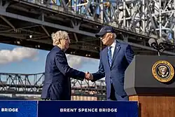 | Kentucky | Covington | January 4 | Arriving via Cincinnati/Northern Kentucky International Airport, President Biden delivered remarks on his economic plan and rebuilding infrastructure at the Brent Spence Bridge He was joined by senators Mitch McConnell and Sherrod Brown, former senator Rob Portman, Kentucky governor Andy Beshear and Ohio governor Mike DeWine.[2] |