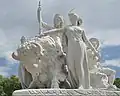Manufactures | Albert Memorial | 1865–1871 | Henry Weekes | George Gilbert Scott | Sculptural group | Grade I | A female personification of manufactures, accompanied by a blacksmith, looks down on two child labourers, one a factory girl and the other a young potter, representing art manufactures.[27] |