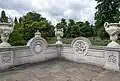 Tazza fountain and flanking naiads | Italian Gardens | 1861 | John Thomas | Sculptures | Grade II | The four large marble basins of the fountain, in the form of scallop shells, are supported by bi-tailed mermen, and the two naiads are each accompanied by a swan.[6] | |