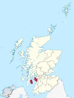 This is a list of public art in North Ayrshire, one of the 32 local government council areas of Scotland. This list applies only to works of public art on permanent display in an outdoor public space and does not, for example, include artworks in museums.