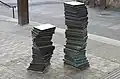 2009 | Diana Bell | Sculpture | Bronze | 1m tall | Oxford City Council | A gift to Oxford in 2009 to commemorate 60 years of twinning with the German city, 'Books' is inscribed with the words Knowledge, Understanding, Friendship and Trust (Wissen, Verständigung, Freundschaft, Vertrauen). The book theme continues on selected benches in the square.[2]