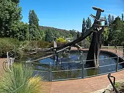 Amos Vimpany | Royal Tasmanian Botanical Gardens | Originally, it was created for the entrance of the Australian Mutual Provident Society's building in Elizabeth Street, at the site of NAB House. After the building was demolished, it was donated to the gardens in 1968 to mark the 150th anniversary of the founding of the gardens. | [9] |