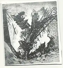 February-March – United Kingdom – On Monday 12 February 1855 large portions of the South Devon Railway sea wall were washed away. Despite repair work starting promptly four days later more of the sea wall and a long 70-yard (64 m) section of line were also washed away.[73] Passengers were obliged to leave their trains and carry their luggage some distance to join another.[74] A temporary viaduct was constructed by the resident engineer, Mr. Margery, and was in operation within a couple of weeks which allowed the through operation of coaches, pulled by hand and rope, although some nervous passengers still alighted and walked.[75]
