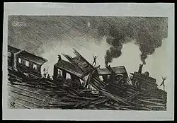 ^L. Wright (Photographer): Train wreck on the Providence Worcester Railroad near to Pawtucket, August 12, 1853, Rochester: George Eastman House; Photo: Trains! at The George Eastman House, kodak.com