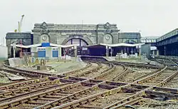 Situated on Admiralty Pier for connection to ships, this was constructed on an expanded pier by SECR, finished in 1914, began to be used on 2 February 1915 but was not available for public use until 18 January 1919; in the meantime it had been renamed Dover Marine on 5 December 1918. It was a large terminus with four platforms covered by a full roof. Platforms were extended to take 12-car trains in February 1959.[6] It was renamed again to Dover Western Docks on 14 May 1979, and was closed by British Rail on 26 September 1994[1] with the demise of boat trains and the opening of the Channel Tunnel. It is now a cruise liner terminal.[7]