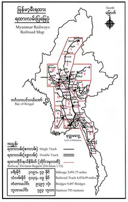 Work on the standard gauge line from Kunming, China to Kyaukphyu started in 2021, with a station at Mandalay. Work was resumed in 2023. [13]