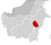 As of 2025, East Kalimantan consists of 7 regencies (kabupaten) and 3 cities (kota). These are listed below with their areas and their populations at the 2010 Census[1] and 2020 Census,[2] together with the official estimates as at mid 2024.[3] The totals below have been adjusted to take account of the removal of North Kalimantan. Cities in this table are marked by grey background, while regencies are left unmarked, both categories are accompanied with regional codes (kode wilayah).