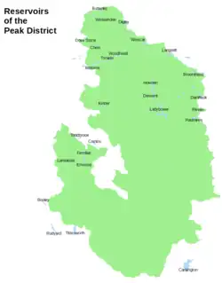 This is a list of reservoirs in the Peak District of England,[1][2] most of which lie within the Peak District National Park, but others lie outside its borders (marked with * in the table below).[3][4]