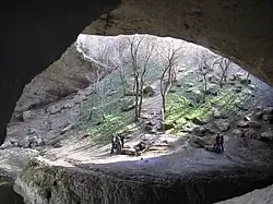 Bozhi Most (God's Bridge) is a natural arch situated in a karst region in the western Balkan Mountains. Bozhi Most is 20 m high and 25 m wide. It was declared a natural landmark in 1964. It is situated in Vratsa Province between the villages Chiren and Lilyache.[4] | ![]() |
