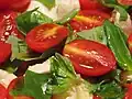 | Insalata Caprese | Campania, Italy | Tomato and cheese salad | Made of sliced fresh buffalo mozzarella, tomatoes and basil, and seasoned with salt, pepper, and olive oil.[21] | |