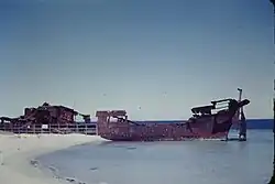 The cargo ship ran aground at the entrance to Accra, Ghana. She was holed and sank.[31]