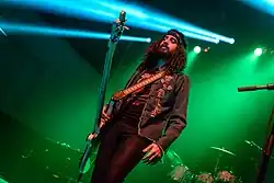 With Will Rockwell-Scott replacing Atkins, Wolfmother began working on their third album in 2011, although the resulting album Keep Moving was eventually released in 2013 as Andrew Stockdale's solo debut.[10] The band returned later in the year as a trio composed of Stockdale, Peres and drummer Vin Steele, and began working on their official third album.[11] New Crown was released independently in March 2014, featuring ten songs written by Stockdale.[12] The band's fourth album Victorious was released in February 2016, with songwriting again credited to Stockdale alone (with the exception of "Gypsy Caravan", which was co-written by Spiderbait drummer Kram).[13]