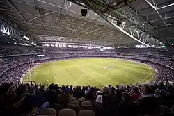 - ^ Etihad Stadium capacity is 56,347 in oval configuration, approximately 3,000 fewer in rectangular configuration.