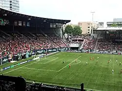 The following is a list of sports venues in Portland, Oregon, specifically the metro area, that are currently in operation or defunct. The city features two major sports franchises, the Portland Timbers of Major League Soccer (MLS) and the Portland Trail Blazers of the National Basketball Association (NBA). The Portland Winterhawks, who are major junior ice hockey franchise in the Western Hockey League, have played in the city since 1976 when the Edmonton Oil Kings were relocated. They are a unique team in that they have two venues, the Moda Center and the Veterans Memorial Coliseum. Providence Park, a 25,218, seat open-air stadium which is the home of the Timbers, is the largest non-auto sports venue in Portland.[1][2] The Moda Center, formerly the Rose Garden, is second with 19,980 seats for basketball games and slightly less for hockey match-ups.[3] Portland International Raceway in Hayden Meadows has the largest seating capacity (30,000) of any sporting venue in Portland.[4] There are several golf courses in the Portland metro area, including the Portland Golf Club where the 1946 PGA Championship was held.