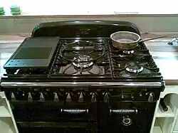 - Kitchen stove – also referred to as a range, a kitchen appliance designed for the purpose of cooking food. Kitchen stoves rely on the application of direct heat for the cooking process and may also contain an oven, used for baking.