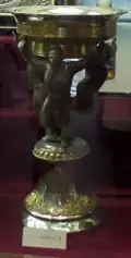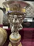 Mongolian Prime Minister's award | Three bökh wrestlers holds a 12 litres silver gilt cup. The original trophy was made with 12 kg (26 lb) of solid silver and 500 g of pure gold. | Mongolia | 2003