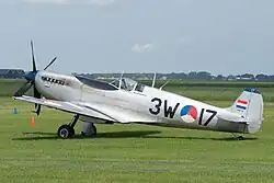 - Spitfire LF Mk IXc MK732 (PH-OUQ). Operated by The Historic Flight of the Royal Netherlands Air Force (Koninklijke Luchtmacht Historische Vlucht) and based at Gilze-Rijen. Built in 1943, it saw action during D-Day. Following the restoration to flight, it initially carried the air force (Klu) markings H-25. Following this it was painted in the scheme it wore when serving with No. 485 Squadron RNZAF as OU-U, named 'Baby Bea V', but now wears an all-over silver scheme 3W-17 of the Royal Netherlands Air Force.[90]