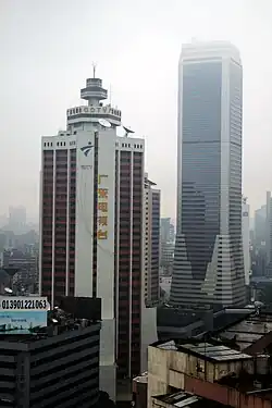 390.2 m (1,280 ft) | 80 | 1996 | Briefly the tallest building in China until completion of Jin Mao Tower in Shanghai. 21st-tallest building in China. Briefly the world's tallest concrete building until completion of Trump International Hotel in Chicago.[6] |
