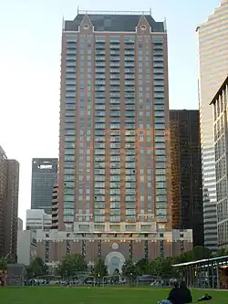 - ^ Originally constructed at a height of 651 feet (198 m), the building's height was extended in 1996.