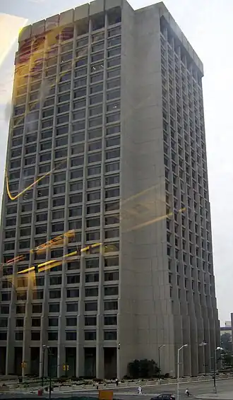 - ^ General Motors, the owner of the Detroit Marriott at the Renaissance Center, maintains that the building has 73 floors.[72] Hines Interests, the property management firm for the building, gives a floor count of 74,[73] while architect Skidmore, Owings and Merrill gives a floor count of 75.[74] Emporis and other building database sites usually give the floor count as 70,[75] while other sources state 73 stories.[76] This table uses the floor count of 73 as stated officially by the building's owner.