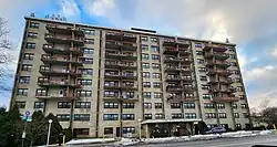 100 (30) | 9 | 1964 | 20 Cliff Street | Low-rise apartment building in Shore Acres.[39] |