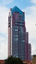 Breakfree Peninsula was surpassed a decade later by The Grand Mariner at 139 m (456 ft), completed in 1992. The Grand Mariner is known for its distinctive purple exterior, which included "barossa purple, beulah pink, tanunda pink, mariner pink, and blue mood" at the time of completion. It underwent a facelift in 2015, reducing the number of colours to four and making the building take on a lighter appearance.[7] An economic recession in the 1990s led to a slowdown in high-risedevelopment for the rest of the decade,[8] and up until the early 2000s.