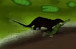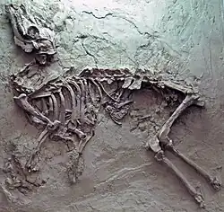 †VulpavusMounted fossilized skeleton of the Eocene mammal Vulpavus - †Vulpavus australis
