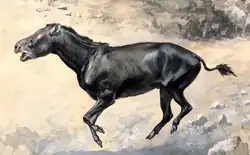 Life restoration of the Miocene camel Aepycamelus, or the long-necked camel. Heinrich Harder (1920). - †Aerugoamnis – type locality for genus