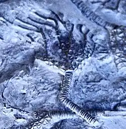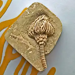 †UlrichicrinusFossilized calyx ad partial stem of the Carboniferous crinoid ("sea lily") Ulrichicrinus - †Ulrichicrinus agnatus