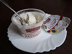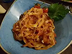 Idrijski žlikrofi are traditional Slovenian dumplings that originate from Idrija.[64] They are made from dough with potato filling and are often served either as a side dish to meat or on their own, in which case they are topped with breadcrumbs.[65] The recipe dates back to the mid 19th century and remains one of the most popular Slovenian dishes.[66] Žlikrofi were awarded an EU protected geographical status in 2010 as Traditional Speciality Guaranteed, the first Slovenian dish to do so.[67]