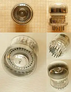 This system is very descriptive of what type of device (triode, diode, pentode etc.) it is applied to, as well as the heater/filament type and the base type (octal, noval, etc.).[1][3] Adhering manufacturers include AEG (de), Amperex (us), CdL (1921, French Mazda brand), CIFTE (fr, Mazda-Belvu brand), EdiSwan (uk, British Mazda brand), Radiotechnique (fr, Coprim, Miniwatt-Dario and RTC brands), Lorenz (de), MBLE(fr, nl) (be, Adzam brand), Mullard (uk), Philips (nl, Miniwatt brand), RCA (us), RFT(de, sv) (de), Siemens (de), Telefunken (de), Tesla (cz), Toshiba (ja), Tungsram (hu), Unitra (pl, Dolam, Polam and Telam brands) and Valvo(de, it) (de).