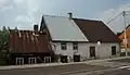 1936 | Traditional synagogue architecture with expressionist elements. The building is not oriented strictly from west to east, but from southwest to northeast. It is 11.85 m long and 7.88 m wide, the outer walls are 6.95 m high. In addition to the traditional synagogue architecture, expressionist elements such as an asymmetrically arranged tower on the southwest corner to highlight the main entrance, high, pointed windows and dormers on the hipped roof were used. There were two stars of David on the tower. The single-story main room was to the southeast; in the northwest there was a two-story construction with three rooms on the ground floor (anteroom to the men's bed room, the staircase to the women's bed room above and a heated room in between). There were separate entrances and smaller square windows. The building had eight large windows: three each on the long sides and two in the southeast, between which the Torah shrine stood. The bima was in the center of the room (slightly offset to the rear). Rows of seats were arranged next to the bima and between the bima and the Torah shrine. When it was converted into a warehouse, the windows were closed with boards, the interior was destroyed and a large gate was added in the southeast.[17] After the Second World War it was used as a warehouse for a long time (after renovations) and has been empty since the 1990s. The synagogue has been restored since 2019. | |
