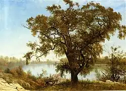 | The Wolf River, Kansas | 1859? | Oil on canvas | 122.5 cm × 97.1 cm (48.2 in × 38.2 in) | Detroit Institute of Arts, Detroit, MI[2]: 337 42°21′33″N 83°03′53″W / 42.359292°N 83.064797°W | |