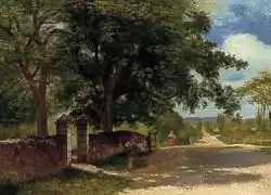 Sunshine and Shadow (or Study for Sunshine and Shadow; or Sunshine and Shadow: Study) | 1855 | Oil on paper mounted on canvas | 48.2 cm × 33 cm (19.0 in × 13.0 in) | Newark Museum, Newark, NJ[2]: 339 [3]40°44′34″N 74°10′18″W / 40.742651°N 74.171779°W IAP 31820356 |