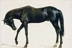 The Black Horse | 1859? | Oil on paper mounted on paperboard | 34.3 cm × 4.8 cm (13.5 in × 1.9 in) | Museum of Fine Arts, Boston[2]: 333 IAP 20490116 |