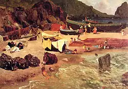 Fishing Boats at Capri | 1857 | Oil on paper mounted on canvas | 34.3 cm × 49.5 cm (13.5 in × 19.5 in) | Museum of Fine Art, Boston, MA[2]: 332 42°20′21″N 71°05′39″W / 42.339167°N 71.094167°W |