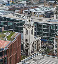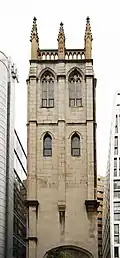 St Alban's, Wood Street | Wood Street, Bassishaw, City of London | 1682–87 | Grade II (1950) | Destroyed in the Blitz. The tower is a private dwelling | 51°30′59.69″N 0°5′38.95″W / 51.5165806°N 0.0941528°W |