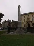Lutyens' War Cross design; the original 1920 erection was destroyed by bombing in 1944, and a replacement cross erected in 1949.[34][35] | |