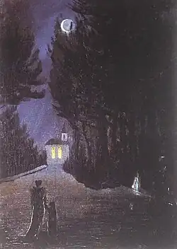 Landscape at moonlight | Circa 1903 | Oil on canvas | 34,2 × 24,2 cm | Unknown (Stolen) |