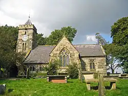 1816–17 | The church was designed by James Gunnery, and alterations were made in 1878. It is constructed in Manley sandstone with a slate roof in Decorated style. It has short transepts and a west tower with an embattled parapet above which is a pyramidal cap.[3][4] |