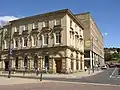 Late 18th to early 19th century | A house, later a shop and warehouse on a corner site, it is in sandstone, mainly stuccoed, with bracketed eaves, and a hipped sandstone slate roof. There are three storeys and a basement, and a wedge-shaped plan, with two bays on the front, a canted corner on the ground floor, and three bays on the right return. In the ground floor is a modern shop front with a fascia, and the upper floors contain sash windows.[48] | II |