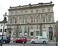 Late 18th century | A pair of stuccoed shops with a stone slate roof. There are three storeys and four bays, the left two bays projecting under a pediment. The right two bays have a frieze and modillion cornice. In the ground floor are modern shop fronts, and the upper floors contain sash windows.[44] | II |