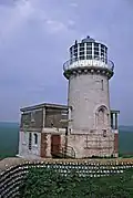II | This red and white striped granite-built lighthouse has an "elegant tapering shape"—the work of Sir Thomas Matthews, a prominent lighthouse engineer. Albert Havelock Case was also involved in the lengthy construction, which necessitated the use of a cofferdam and a temporary cable-car to take materials from the top of the cliff to the foreshore. Original interior features, from bunk beds to the central staircase, have been preserved inside. | [69] |