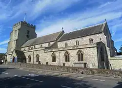 I | The ancient parish church has 12th-century origins and was complete by 1500. R.C. Carpenter's restoration of 1851 changed little of the exterior appearance: a wide stone and flint building with a tall, square, castellated west tower of sandstone. The four-bay arcades with alternating pier designs are early 13th-century. Some Norman work also survives inside. | [45][46] | |