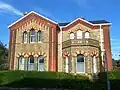 II | The style of this building complements that of the elaborate church next to it: the walls are of yellow and red brick and there are arched windows with polychromatic surrounds, also of brick. The roof is tiled with slate. | [64] |