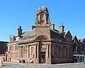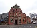 1904–05 | The bank was originally the Bank of Liverpool, and was designed by Willink and Thicknesse. It stands on a corner site, is built in brick with stone dressings and a Westmorland slate roof, and has two storeys and attics. There is one bay on Market Street and two on Alderley Road, with a canted entrance bay on the corner between them. The entrance is flanked by Tuscan columns, and the windows are sashes. On top of the corner bay is an octagonal turret with festoon decoration, and a shallow roof with a lead finial.[49][50] | II |